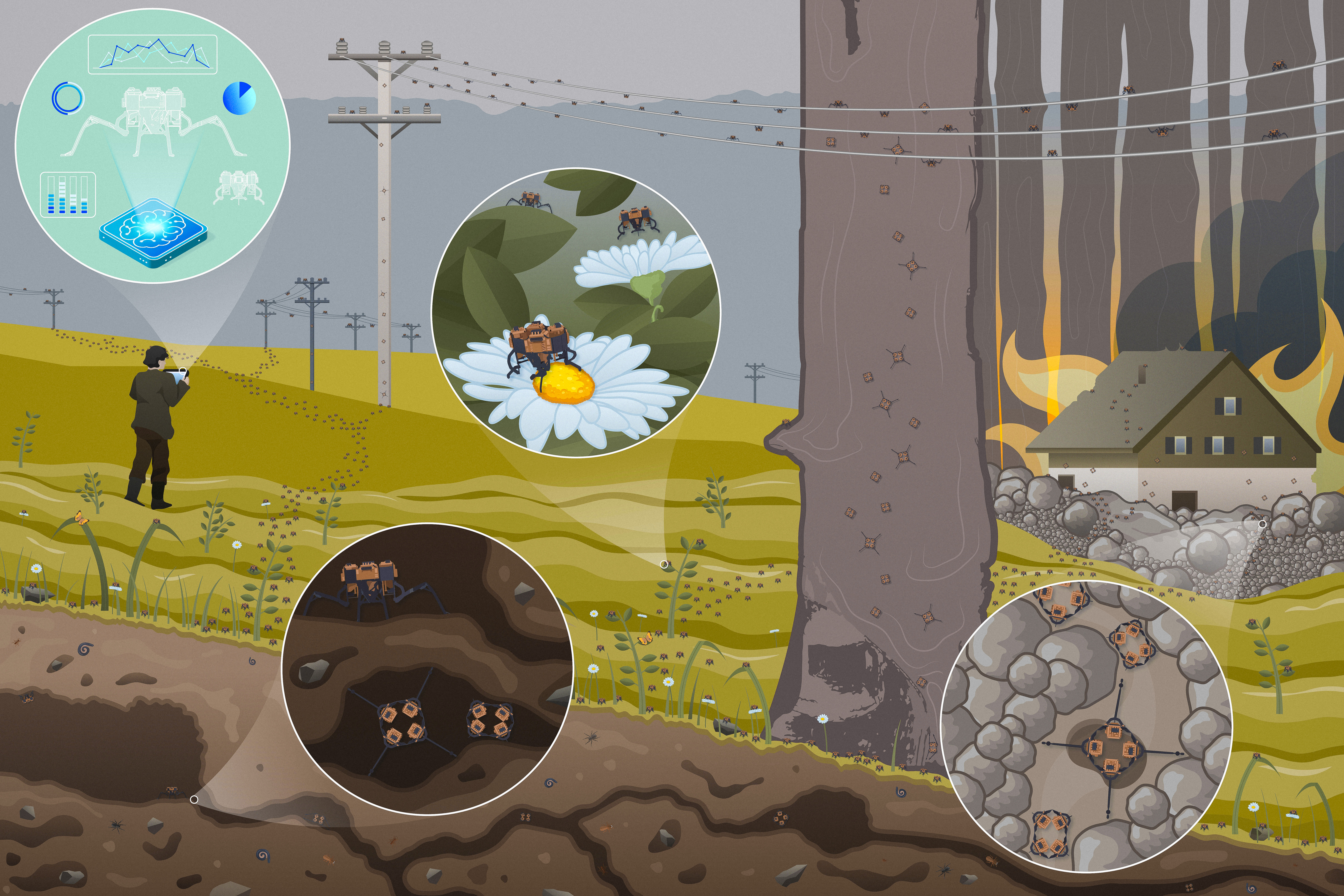 We aim to advance biomechanics by uncovering the fundamental principles of robustness that make animals incredibly successful at locomotion. We’ll translate biological principles into novel engineering mechanisms for highly robust robots. The Insect Inspired Intelligence Lab (III) aims to maximise our potential for significant positive societal impact by enabling real-world applications such as high-value asset inspection, precision agriculture, environmental monitoring for sustainability, and post-war reconstruction.